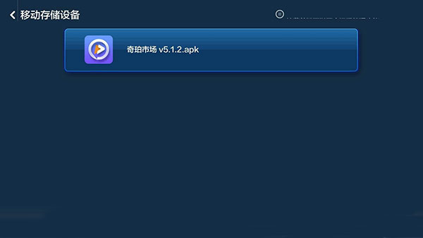 1、下载本站提供的奇珀市场tv版apk文件,并拷贝进U盘中2、将U盘插到盒子的USB接口上面,检测到新的USB设备并打开,如果没有弹出对话框,选择【高清播放器】,找到【移动存储设备】