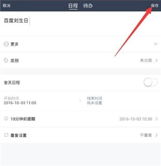 最后我们设置一下提醒的模式,365日历可以设置每天重复提醒功能,而且还可以改为全天性的日程,只要照着图下的位置,将全天日程项目打开就可以了!