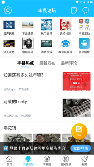 丰县论坛APP作为一款专门为丰县市民推出的本地生活服务类软件,让本地市民通过丰县论坛APP了解到当地最新的各种生活资讯,非常的方便!包括新闻、工作、租售房、美食、交友等不同的方面,满足市民们的不同需求!对于本地市民来说必不可少的一款生活服务软件,也是外地市民了解丰县最方便快捷的方式。感兴趣的用户千万不要错过下载!