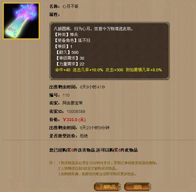 六、玩家进入游戏到长安(315,95)找“阿由葛保常”,即可取出在“藏宝阁”购买成功的物品。由于藏宝阁页面和游戏内信息之间有所延迟,所以玩家在藏宝阁购买的东西需要略等15分钟左右才可以在游戏内看到。