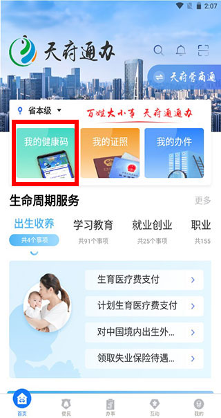 根据客户的常见习惯,新升级的“天府通办”聚类算法便民利民,发布了健康医疗、证件申请、权益维护、社保办理、个人公积金、法律援助、缴费、城市交通、求职文化教育、生育收留等十大热门专项服务项目。