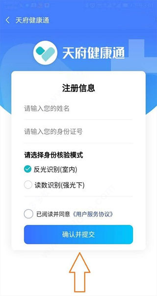3、进入页面后输入您的姓名和身份信息,选择【确认并提交】。