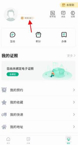 3、进入首页,点击我的,点击上方的实名认证进入,进行账号实名认证