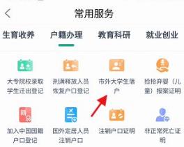 5、进入更多,找到常用服务,找到下方的户籍办理后,点击下方市外大学生落户进入