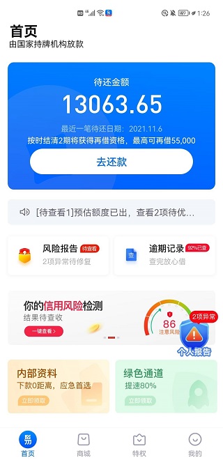 1、分期购物:国行正品,品质保证,低息透明2、优质体验:全程线上申请借款贷款,极速审批,无抵押,免担保