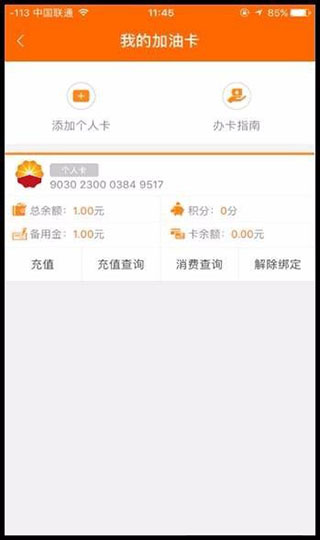 1、客户可将加油卡绑定在APP上,通过“我的加油卡”栏目查询卡余额,积分、备用金等信息。