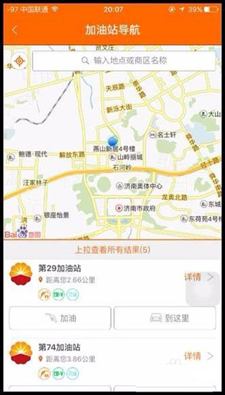 –打开油站导航,选择附近的加油站进行导航。