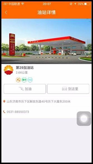 点击加油站详情,可查询加油站服务信息、联系电话等