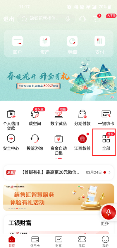 采用乐高式布局和端云技术,简单下拉即可进入精简聚合的导航页签,从海量金融服务中快速定位呈现,提供“千人千面”的个性定制服务。