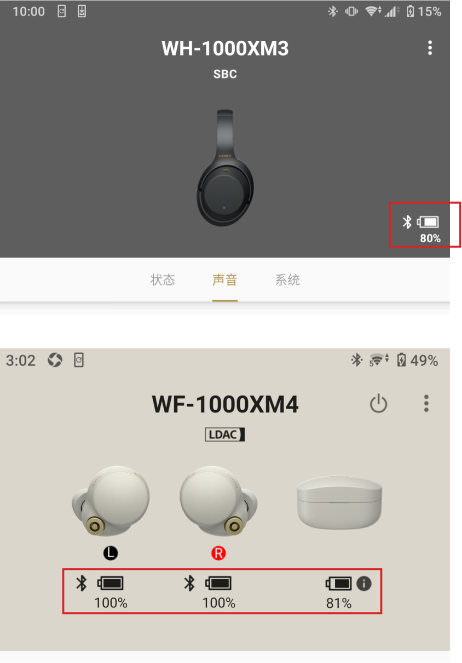 显示连接的耳机及其剩余电量