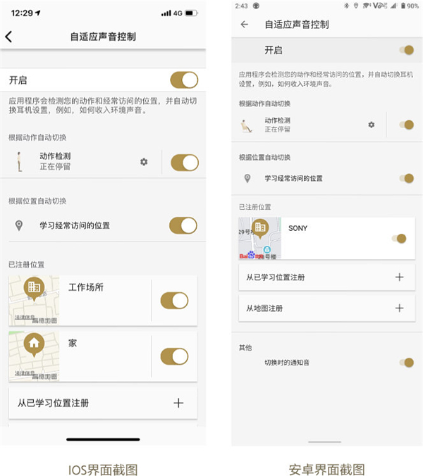 3、自适应声音控制”可识别您的行动并自动设置为环境声音模式。