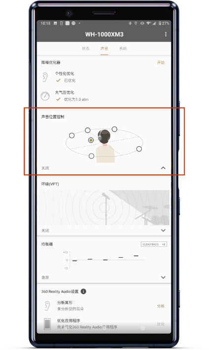 可设置声音传来的方位。比如在街上步行,为了听到更多左边马路上传来的环境音,你可以调整耳机内的音乐声从右边传来。