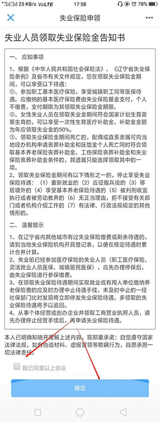 第三步,阅读“失业人员领取失业金告知书”;并点击同意确定;接着按照提示进行操作即可。