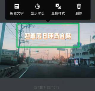 4、点击画面中已添加的文字,还可以编辑内容:重新编辑文字内容;显示时长:查看和调整文字出现的时间;更换样式:改变文字的样式;删除:移除当前添加的文字。