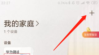 4、打开智慧生活App,在“家居”首页,点击右上角“+ > 添加设备”,智慧生活App将自动扫描设备。