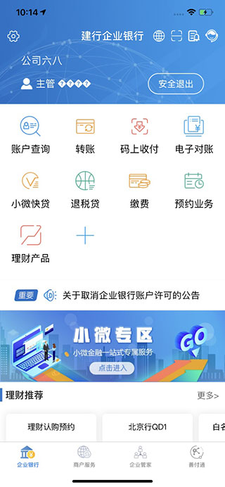 建设银行企业银行APP功能: