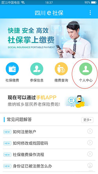 1、安装完成,进入四川e社保软件,点击个人中心。