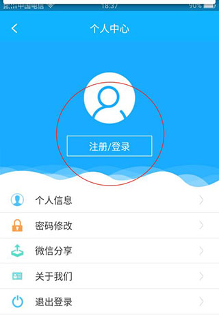 2、点击注册/登录,再点击注册