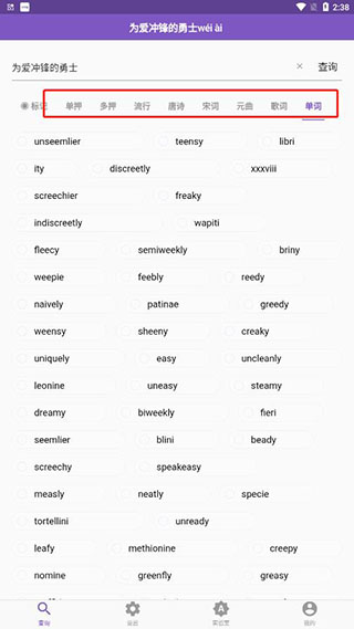 4、您可以按照自己的需求在这里进行智能的搜索,绝对可以帮助您快速搜索押韵的内容;