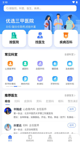提供一站式收藏功能,包括医院门诊、部门、医生或疾病。