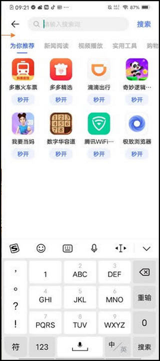 3、用户可以从应用商店、全球搜索、智能桌面等多个入口中找到快速应用,无需下载安装即可打开使用。