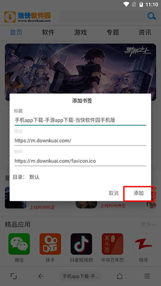 1、在本站下载安装该软件,输入框中输入想要加书签的网址
