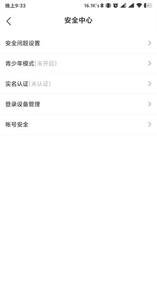 在皮皮蟹app我的界面中,找到安全中心选项,点击后进入安全中心界面。