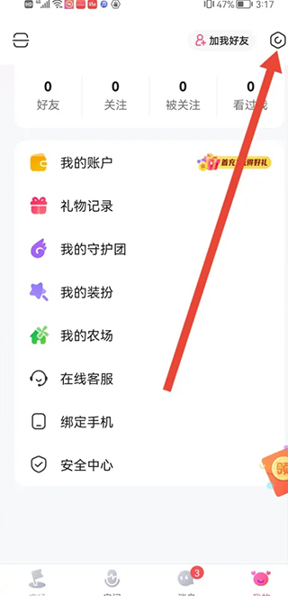 来到个人主页,点击右上角的设置图标。