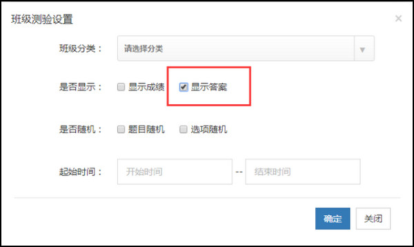 3、找到要查看答案的测验标题,点击页面右侧设置按钮,在弹出的对话框中选择“显示答案”并确定。设置完成后,学生就可以在完成测验后查看答案了。