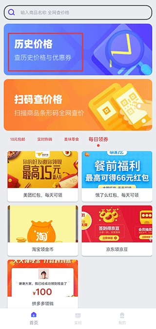 搜索商品名称,查询各大电商实时价格、优惠券、历史价格。慢慢购买,再也不用担心买贵。打开比价商品自动查历史价与商品优惠券,不放过每一个省钱机会