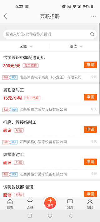 2、上面就会显示出来工作内容和地点时间报酬了,当然你还可以选择上方的区域按钮调整一下位置