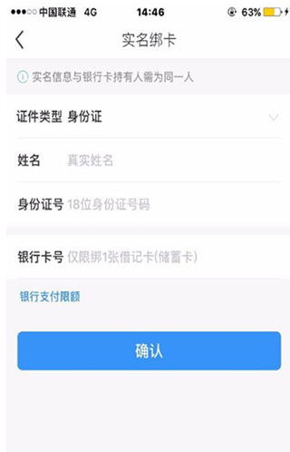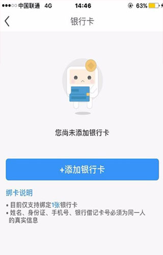 3、点击添加银行卡,然后依次输入姓名、身份证号、银行卡号等信息,要注意一定要填写个人真实信息哦。