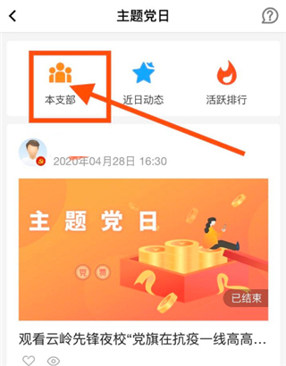 主题党日:党支部可组织线上线下主题党日活动,“云岭先锋”手机APP可提供线上报名、现场签到、活动动态发布等服务功能。