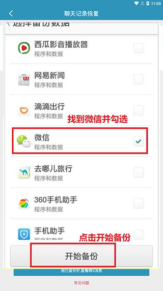 1、首先点进微信聊天记录恢复软件,点击想要的微信聊天记录恢复功能