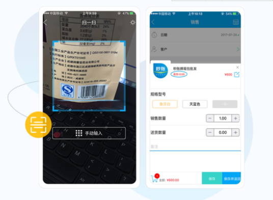 店里不需要配备扫描枪,只需要在手机上安装秒账,手机就可以在几秒钟内变成“开票软件”,镜头对准条形码就可以完成商品扫描,提高开票率!