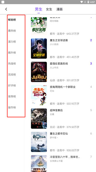 5、根据自身喜爱可以查看各类榜单,更快速找到阅读小说