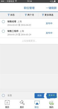 3、与网才Web端同步,随时随地查看职位信息,进行刷新、暂停、再发布等职位操作。