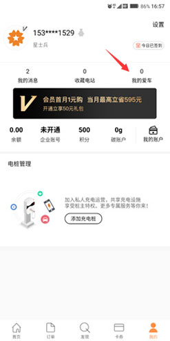 1、首先,我们先点击右下角我的,找到箭头处的我的爱车。