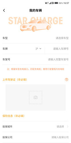 3、然后,填写好车辆的基本信息后,就可以用星星充电给你的爱车充电啦!