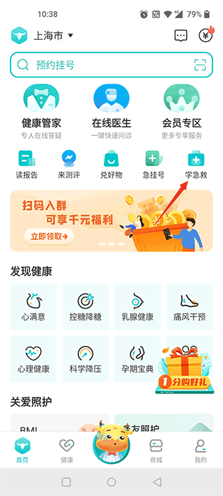 1、首先我们下载安装好app,然后登录进去可以看到有许多的软件功能按钮,我们选择如图所示的学急救