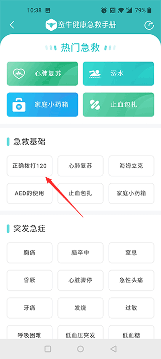 2、然后我们可以选择了解什么方面的急救措施,小编以正确拨打120为例子