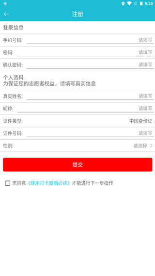 1、账号注册进入APP后点击右下角“我”进入登录界面,第一次登录需要注册,可使用手机号注册或者腾讯账号注册(用qq注册也需要绑定手机号码),注册时应按顺序填好各注册项(包括手机号、密码、姓名、昵称、证件号码)。注册账号完成后,点击自己头像注册志愿者,会得到自己的志愿者卡号。到此注册就已经完成了。