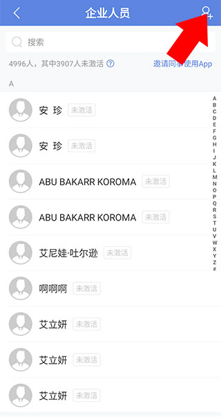 2、点击页面右上角的”添加“按钮,选择你要添加同事还是添加访客。