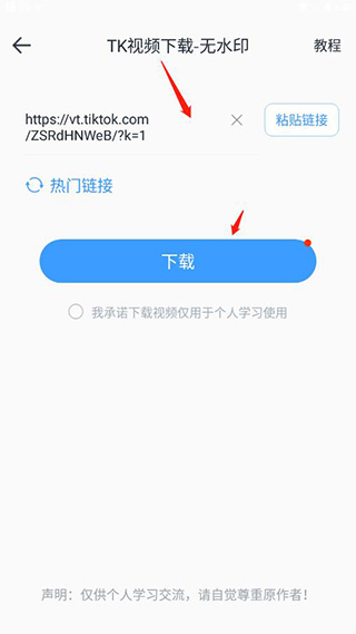2、可以无水印下载TK视频,复制视频链接,点击一键下载;