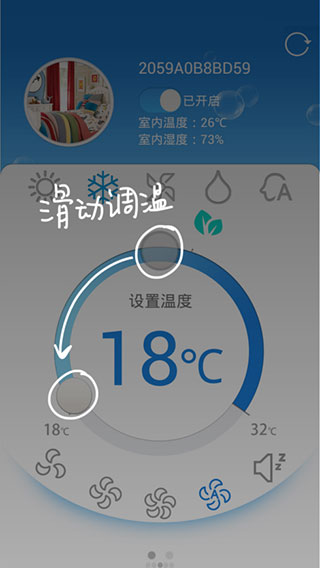 4、同时在这里可以看到当前室内温度,然后左右滑动可以进行调节;