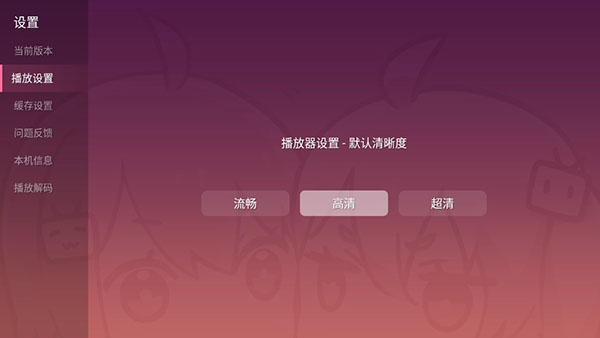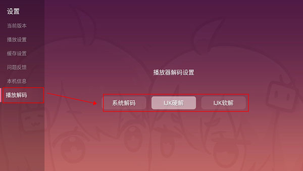 2、在播放之前各位可以进入到设置中,在播放解码中根据电视性能进行调整