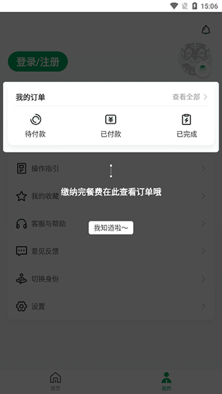 3、我的的界面可以查看缴纳完的餐费订单
