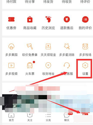 1、手机打开拼多多进入【个人中心】选项然后点击【设置】。