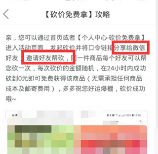 4、在砍价免费拿活动界面将【商品口令链接】分享微信好友。