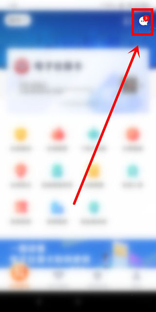 3、我们再次返回到首界面中来,在该页面的右上角位置找到消息这个图标,点击进入。